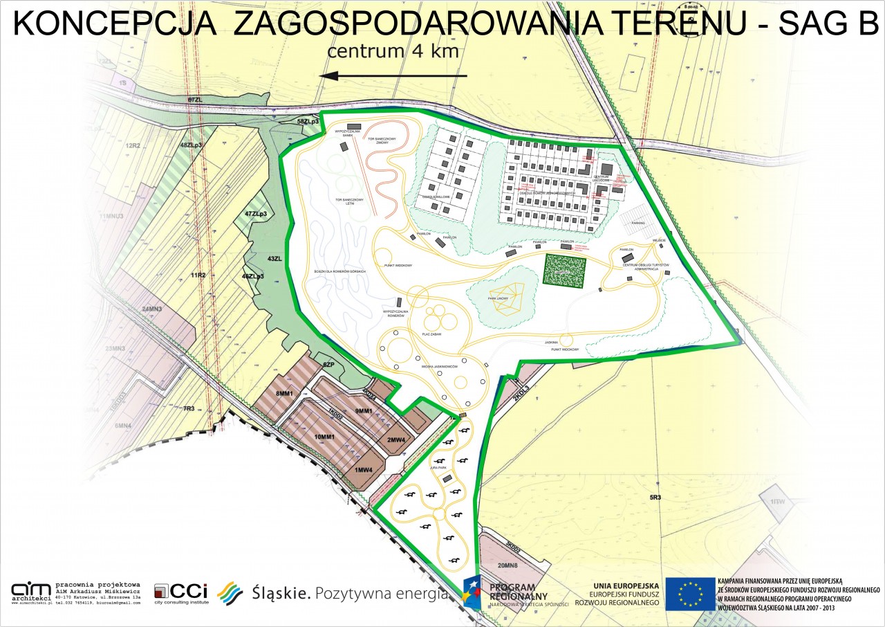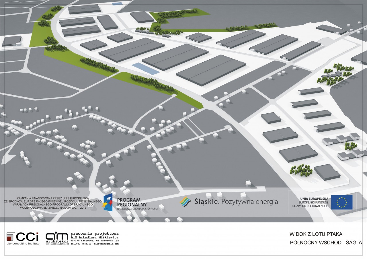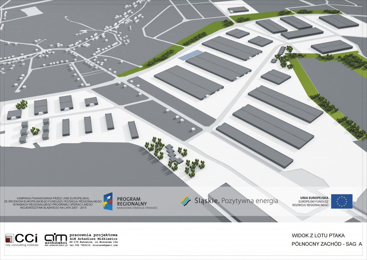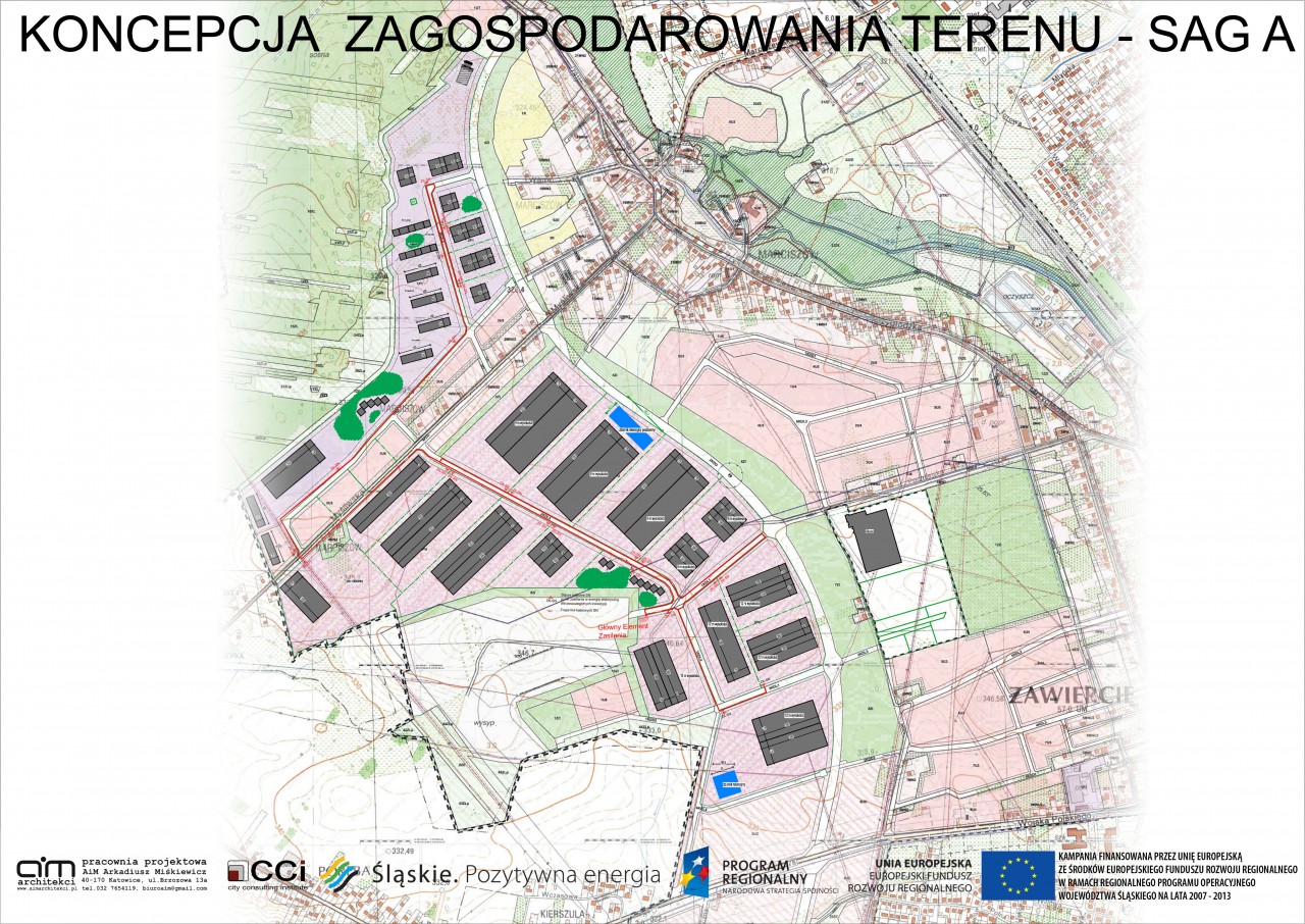 Opracowanie miało na celu promocję Strefy Aktywacji Gospodarczej gminy Zawiercie. Założenie składa się z 2 obszarów- SAG A oraz SAG B. SAG A to ponad 152 ha powierzchni. W części założenia oznaczonej skrótem SAG A zlokalizowane zostały obiekty o różnym przeznaczeniu, leżące w pięciu strefach oznaczonych na mapie w załączniku rysunkowym. Znajdują się tam strefy usług publicznych, założenie parkowe oraz obiekty przemysłowe o przeznaczeniu magazynowym, produkcyjnym, przemysłowym, strefa Zawierciańskiego Parku Przemysłowo-Technicznego i Centrum Transferu Technologii Wiedzy.